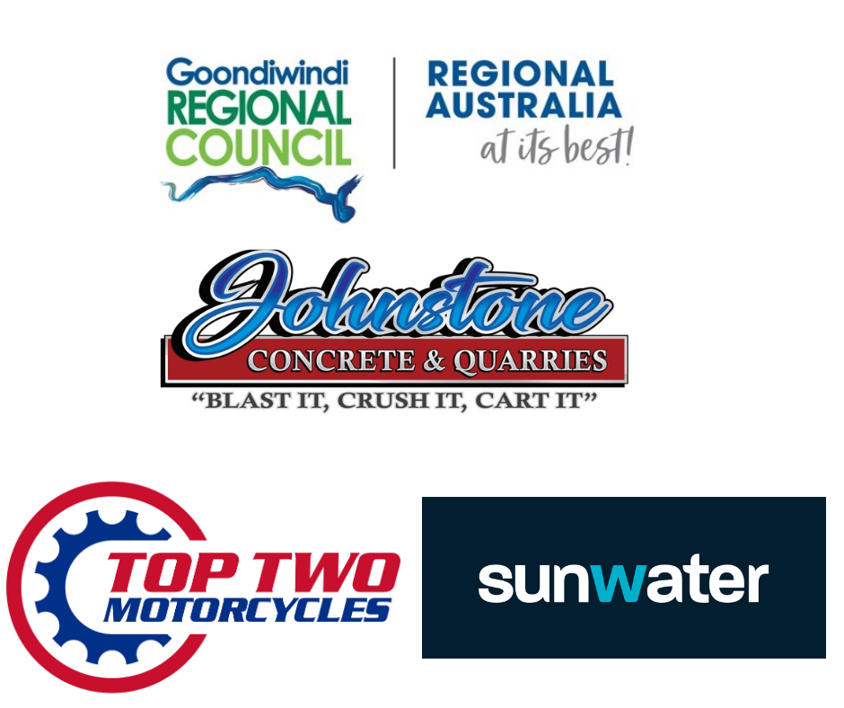 Goondiwindi Regional Council, Johnstone Concrete & Quarries, Sunwater, Darling Downs Bank, Cadelga Cattle Co, A&E Clarke Contracting, Top Two Motorcycles, Elders Inglewood, Top Two Motorcycles, Grand Central, Twidale Auto & Motocycles, Toowoomba Bikes and Bits, Nordex and Acciona,